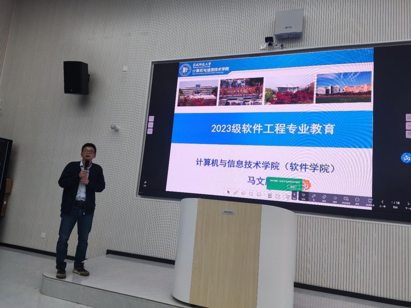 在淮河校区理综楼209报告厅、综合教学楼209报告厅,举行2023级软件工程、数据科学与大数据技术专业新生专业教育暨师生见面会。学院副院长李然、李艳灵,孙艳歌博士、马文鹏博士、徐丽娟博士、涂潇博士、樊建伟博士、赵鹏博士等及软件工程、数据科学与大数据技术专业2023级本科新生参加会议。